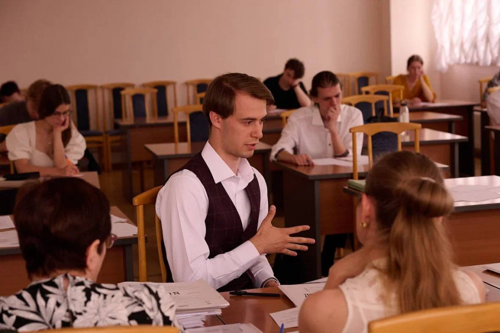 Председателем экзаменационной комиссии выступил и.о. ректора Дмитрий Сергеевич Сидоров.